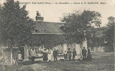 L’autre fille, Léontine Alphonsine est née le 30 mars 1872 à Chaumont. Elle se marie le 22 octobre 1890 avec Jean Isaï henri GARNIER (né le 9-12-1864) à Saint-Evroult de Montfort (61), décédé en 1934 à Chaumont. Le couple reprend tout naturellement la succession d’Edmond et Victorine Quiquemelle. Ils sont toujours présents sur le recensement de 1921 sur la ferme de la Haraudière.