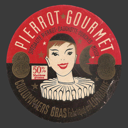 PIERROTS : Oui, notre Pierrot Gourmand, est aussi connu et célèbre, que Dumont D’Urville, Elizabeth Taylor ou autres personnages ou personnalités qu’il côtoie sur ces pages du Camembert-Museum. La marque "Le Pierrot Gourmand" fut fondée en 1892 par Georges Evrard, un confiseur parisien. C’est lui qui va lancer en 1924, la première sucette,composée de sucre d’orge parfumé et coloré, sous forme de fer de lance, planté sur un batonnet de bois, permettant ainsi de savourer la confiserie sans se salir les doigts. On se souvient tous des présentoirs à sucettes Pierrot Gourmand,que l’on trouvait dans les petites épiceries et les boulangeries de nos villes et de nos villages. Un personnage fictif ou réel, à condition qu'il soit célèbre et reconnaissable, peut rendre son produit célèbre. Vue la notoriété et l’ancienneté de la marque, il était normal qu’un fromager s’empare du nom pour vendre aussi ses camemberts, surtout si ses fromages pouvaient se vendre comme des sucettes...